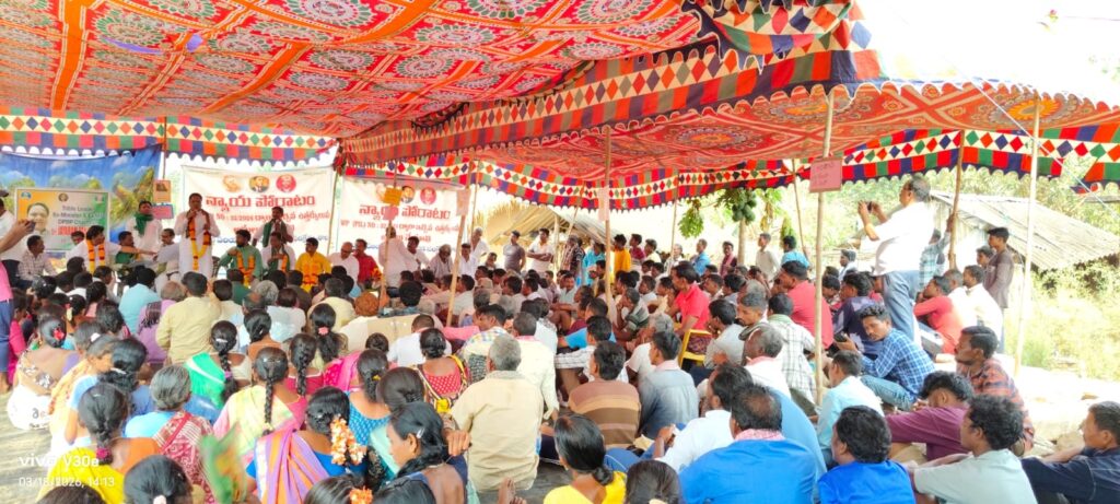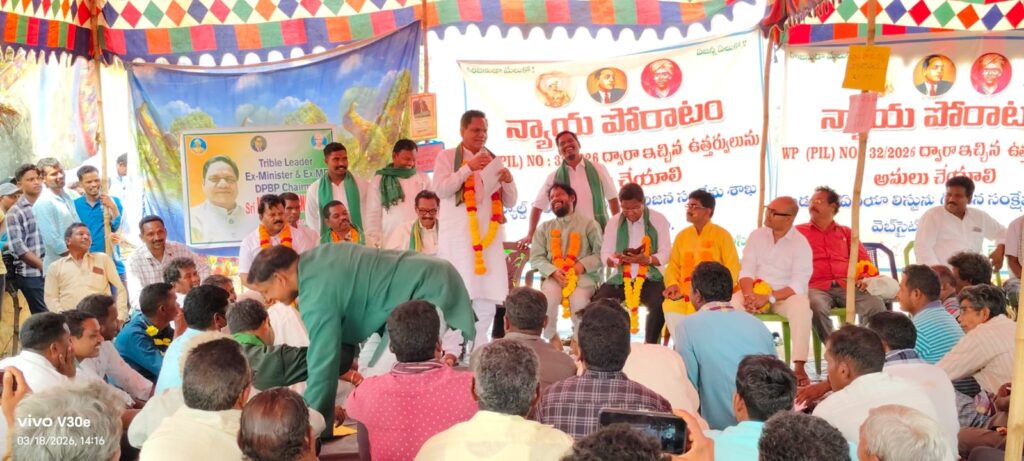 16వ రోజు షెడ్యూల్ ఏరియా సాధన న్యాయ పోరాట దీక్షలో భాగంగా ఈరోజు జగ్గు దొర వలస గ్రామంలో పార్వతీపురం మన్యం జిల్లా గిరిజనులు చేపడుతున్న నిరాహార దీక్ష కార్యక్రమానికి మద్దతు తెలుపుతూ *జయరాం పాంగి* (Ex ఎంపీ, Ex మినిస్టర్, DPBP చైర్మన్ – ఇండియా) గారు జగ్గు దొర వలస విచ్చేసి ఉన్నారు. ఆయన కార్యక్రమంలో భాగంగా గా మాట్లాడుతూ, చట్ట ప్రకారం కోటి ఇచ్చిన తీర్పుని ఇచ్చిన గడువులోపు అమలు చేయాలి అమలు చేయకపోతే కోర్టు ధిక్కరణ కింద లెక్కకడుతూ సుప్రీంకోర్టుకి వెళ్ళవచ్చు అని, ఈ సమస్యను భారత రాష్ట్రపతి అయిన ద్రౌపది మురముగారి దగ్గరికి, అలాగే భారత ప్రధానమంత్రి నరేంద్ర మోడీ గారి దగ్గరికి కూడా తీసుకు వెళ్తానని చెప్పి అన్నారు. అలాగె మనమంతా కలిసి ఢిల్లీ వెళ్లి మన సమస్యని వారికి తెలియజేద్దామని అన్నారు. ఒకప్పుడు మనమంతా ఒరిస్సా రాష్ట్రంలోని గంజాం జిల్లాలో భాగంగా ట్రైబల్ బెల్ట్ అంతా ఒక ప్రాంతంగా వైజాగ్ పట్టణం లో ఉండే వాళ్ళం. రాను రాను రాష్ట్రం బై ఫర్ కేషన్ తర్వాత విడిపోయాం, అయినా కూడా మనమంతా ఒకే తల్లి బిడ్డలం. కాబట్టి మీ సమస్య కూడా మా సమస్య. షెడ్యూల్ ఏరియా సమస్యను ఏ ప్రభుత్వాలు పరిష్కరించడానికి ముందుకు రావడం లేదు కాబట్టి, మనమంతా కూడా ఒరిస్సా నుండి నాలుగు జిల్లాలు, ఆంధ్రప్రదేశ్ నుండి రెండు జిల్లాలు కలిపి ఒక కొత్త రాష్ట్రాన్ని ఏర్పాటు చేసుకొని ఒక స్వయం ప్రతిపత్తి గల రాష్ట్రాన్ని ఏర్పాటు చేసుకొని ముందుకు వెళ్లాల్సిన అవసరం ఎంతైనా ఉంది. ఇప్పుడు మీ ఆంధ్ర రాష్ట్రంలో, పార్వతీపురం మన్యం జిల్లాలో గల 14 మండలాలకు ఐదవ షెడ్యూల్ సమస్య ఉంది కాబట్టి, స్వయం ప్రతిపత్తి గల ఒక గిరిజన రాష్ట్రంగా ఏర్పడితే మనకి రాజ్యాంగంలోని ఆరవ షెడ్యూల్ లో పొందుపరిచిన హక్కులన్నీ మనకి కల్పించబడతాయి. కాబట్టి గిరిజనులంతా ఏకమై ఒక తాటికి రావలసిన అవసరం ఎంతైనా ఉందని చెప్పి జయరామ్ పాంగీ గారు మాట్లాడారు. ఆదివాసి జాయింట్ యాక్షన్ కమిటీ పార్వతీపురం మన్యం జిల్లా చైర్మన్ అయినటువంటి నిమ్మక జయరాజు గారు మాట్లాడుతూ. హైకోర్టు ఇచ్చిన తీర్పు ప్రకారం 1496 గ్రామాల లిస్టు ని ఆంధ్రప్రదేశ్ ట్రైబల్ వెబ్సైట్లో పొందుపరచడానికి ప్రభుత్వానికి ఇచ్చినటువంటి గడువు తీరడానికి ఇంకా రెండు వారాలు మాత్రమే మిగిలి ఉందని, ఏప్రిల్ ఒకటవ తేదీ లోపు షెడ్యూల్డ్ ఏరియా లిస్టు ని పొందుపరచాల్సిన అవసరం ఉందని. ఒకవేళ అలా జరగని పక్షంలో గిరిజనుల నుండి తిరుగుబాటు తప్పదని, ఎంపీ, ఎమ్మెల్యే, కలెక్టర్, తహసీల్దార్ కార్యాలయాలను ముట్టడి చేస్తామని తెలియజేశారు. న్యాయ పోరాటంతో పాటు ధర్నా చేయడానికి కూడా వెనకాడబోమని అన్నారు. కార్యక్రమంలో గిరిజన ఉపాధ్యాయ నాయకులు రాయల సుందర్ రావు గారు, ఆదివాసి ఐక్య వేదిక అధ్యక్షులు గేదెల రామకృష్ణ గారు, APSAAS అధ్య
