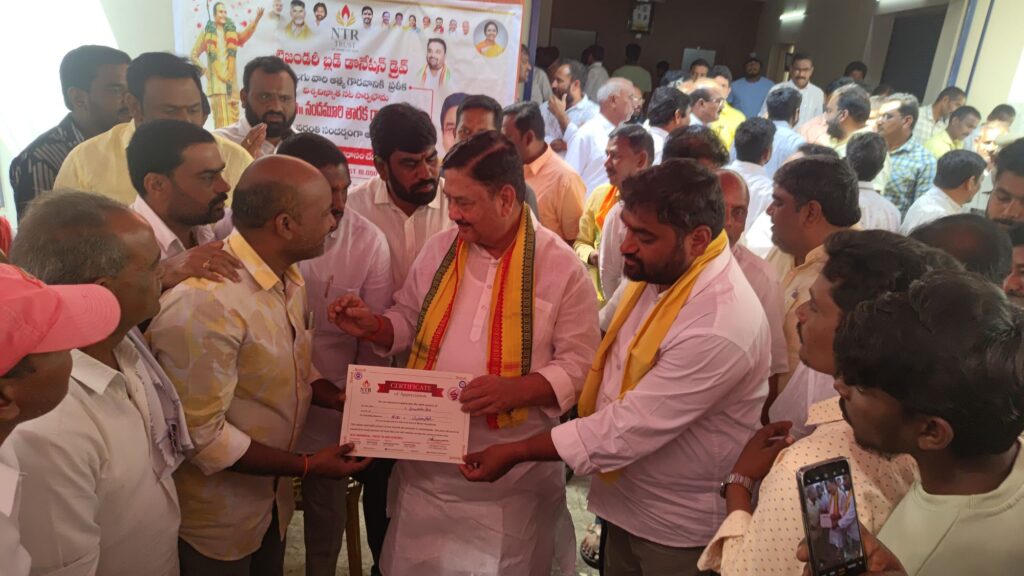 ఈ సందర్భంగా నాయకులు, కార్యకర్తలతో కలిసి ఎన్టీఆర్ గారి చిత్రపటానికి పూలమాల వేసి నివాళులు అర్పించారు. అనంతరం ఎమ్మెల్యే కళావెంకటరావు గారు రక్త ధాతలకు ప్రశంస పత్రాలను అందజేసి అభినందించారు.