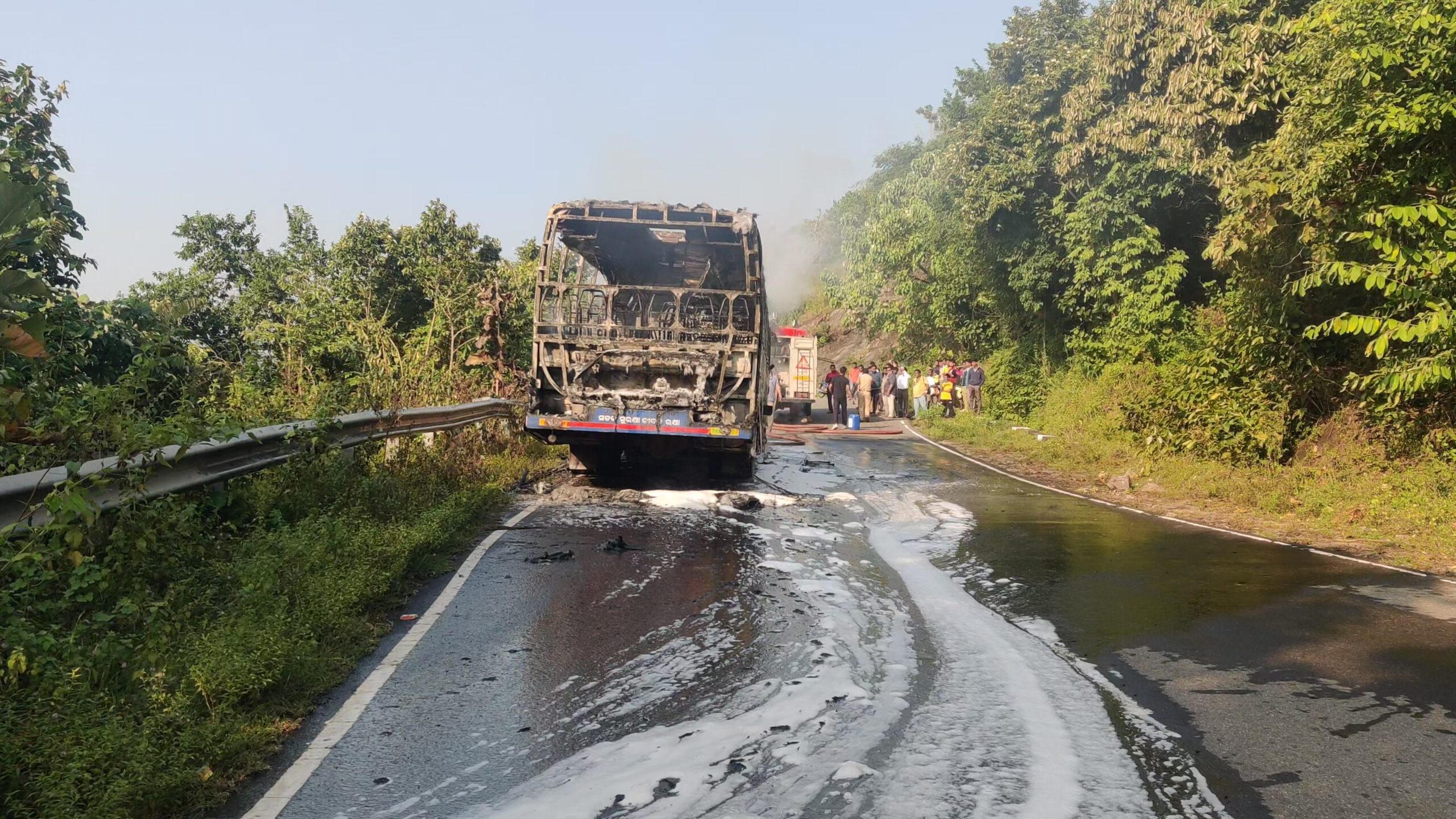 బ్రేకింగ్ న్యూస్పార్వతీపురం మన్యం జిల్లా ఆంధ్ర ఒరిస్సా సరిహద్దు ప్రాంతంలో ఆంధ్ర నుంచి ఒడిస్సా వెళ్తున్న ఒరిస్సా ఆర్టిసి బస్సు కు అగ్ని ప్రమాదం.సాలూరు నుంచి 9km దూరం lo ఘాట్ రోడ్ మీద బస్ ఇంజిన్ హీట్ ఎక్కటం తో ఒక్కసారిగా చెలరేగిన మంటలు. డ్రైవర్ అప్రమత్తం అవ్వటం తో ఏలాంటి ప్రాణనష్టం జరగలేదు .సమయానికి వచ్చిన ఫైర్ సిబ్బంది. పూర్తిగా దగ్ధమైన బస్సు. Spread the love టపా నావిగేషన్ సాలూరు ఘనంగా ఏఐటీయూసీ106 వ ఆవిర్భావ దినోత్సవం వందేమాతరం దేశభక్తి గేయం రచించి నేటికీ 150 సంవత్సరాలు