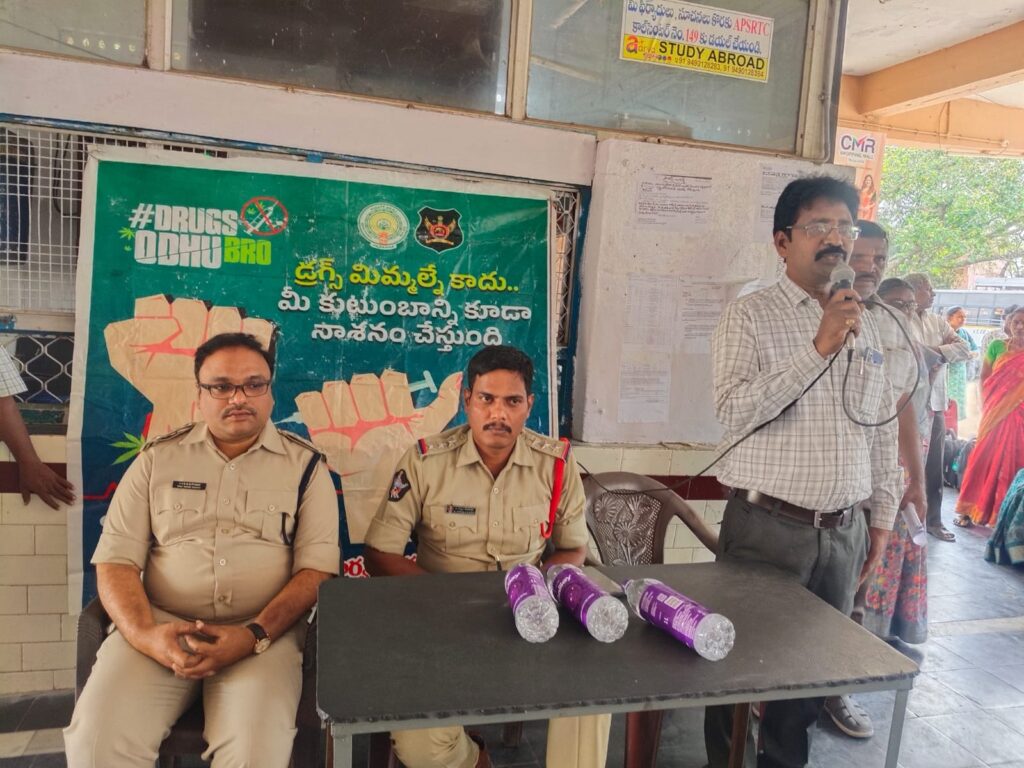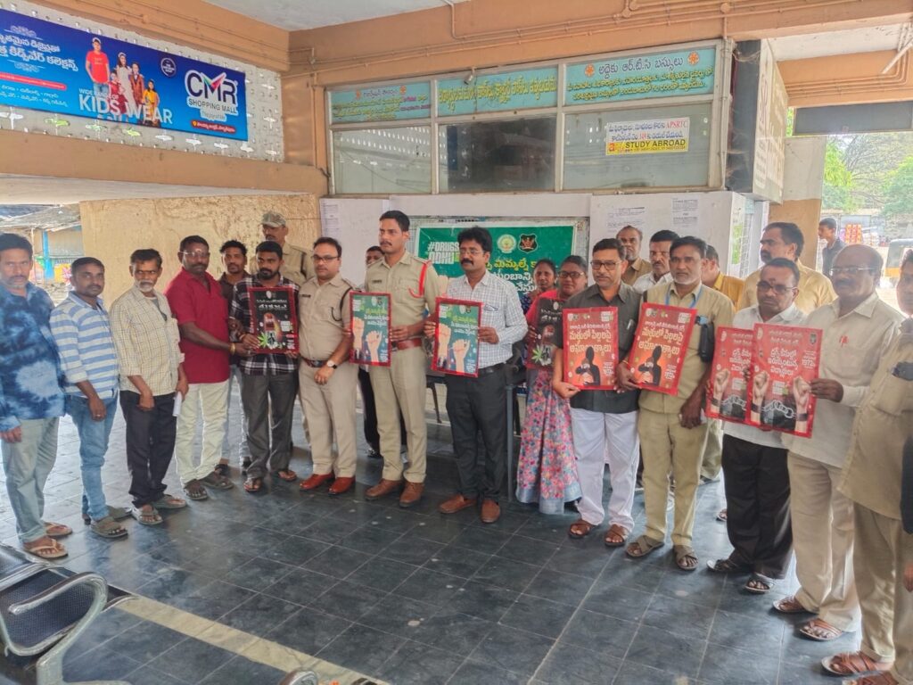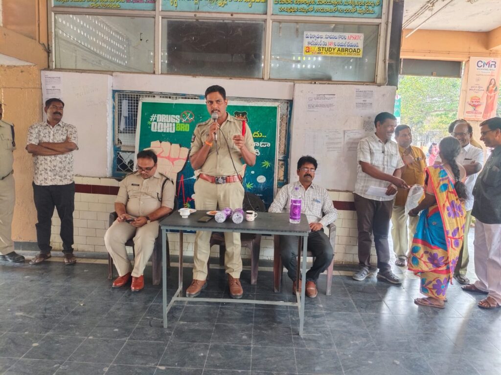 సాలూరు పట్టణంలో మోటార్ వెహికిల్ ఇన్స్పెక్టర్ (MVI), సాలూరు మరియు డిపో మేనేజర్ (DM), RTC సాలూరు వారి సమక్షంలో, సాలూరు పట్టణం సర్కిల్ ఇన్స్పెక్టర్ మరియు సిబ్బందితో కలిసి RTC బస్ డ్రైవర్లు, కన్డక్టర్లు, RTC సిబ్బంది మరియు ప్రయాణికులకు డ్రగ్స్ / గంజాయి అక్రమ రవాణా నిరోధక అవగాహన కార్యక్రమం నిర్వహించారు.ఈ సందర్భంగా డ్రైవర్లు, కన్డక్టర్లు మరియు సిబ్బందికి గంజాయి మరియు ఇతర మాదక ద్రవ్యాల అక్రమ రవాణా చట్ట విరుద్ధమని, ఇటువంటి చర్యల్లో పాల్గొన్న వారిపై కఠిన చట్టపరమైన చర్యలు తీసుకోబడతాయని తెలిపారు. అలాగే, ఎవరైనా అనుమానాస్పద వ్యక్తులు లేదా సరుకు కనిపించినట్లయితే వెంటనే పోలీసులకు సమాచారం అందించాలని తెలిపారు ప్రజలకు మాదక ద్రవ్యాల వినియోగం వల్ల కలిగే హానికర ప్రభావాలు మరియు వాటి నివారణలో ప్రజల సహకారం ఎంత ముఖ్యమో వివరించి అవగాహన కల్పించామని.ఈ కార్యక్రమంలో RTC సిబ్బంది మరియు ప్రయాణికులు పాల్గొని పోలీసులకు, రవాణా మరియు ఆర్టీసీ అధికారులుకు తమ సహకారం అందిస్తామని తెలిపారు. Spread the love టపా నావిగేషన్ నూతన వధూవరులను ఆశీర్వదించిన మాజీ డిప్యూటీ సీఎం రాజన్నదొర ఆర్ధిక స్వాతంత్య్రం తోనే మహిళల వృద్ధి