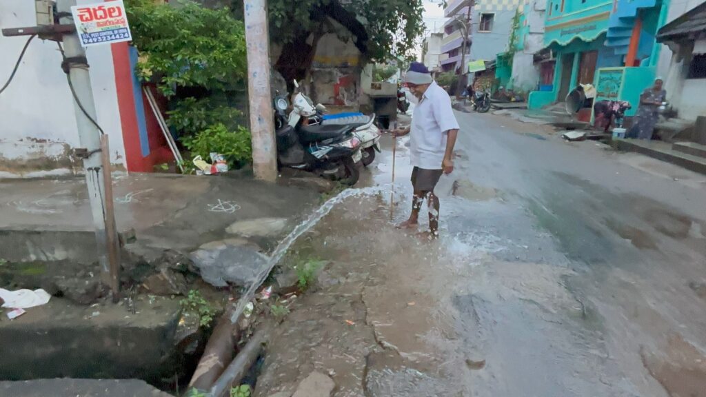 పార్వతీపురం మన్యం జిల్లా సాలూరు పట్టణం లో స్థానిక మేధర వీధి రామ మందిరం వద్ద నీటి సరఫరా చేసే ప్రధాన పైపులైను కు రంద్రం పడడంతో ప్రజలకు చేరాల్సిన త్రాగునీరు వృధాగా రోడ్డుపై పోతుంది గత కొన్ని రోజులుగా ఇదే పరిస్థితి ఉందని స్థానికులు తెలుపుతున్నారు. త్వరగా ఈ పైపు లైను ను బాగు చేయాలని స్థానికులు కోరుతున్నారు.