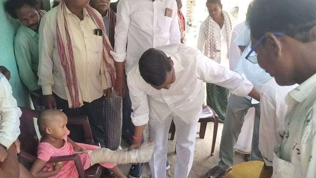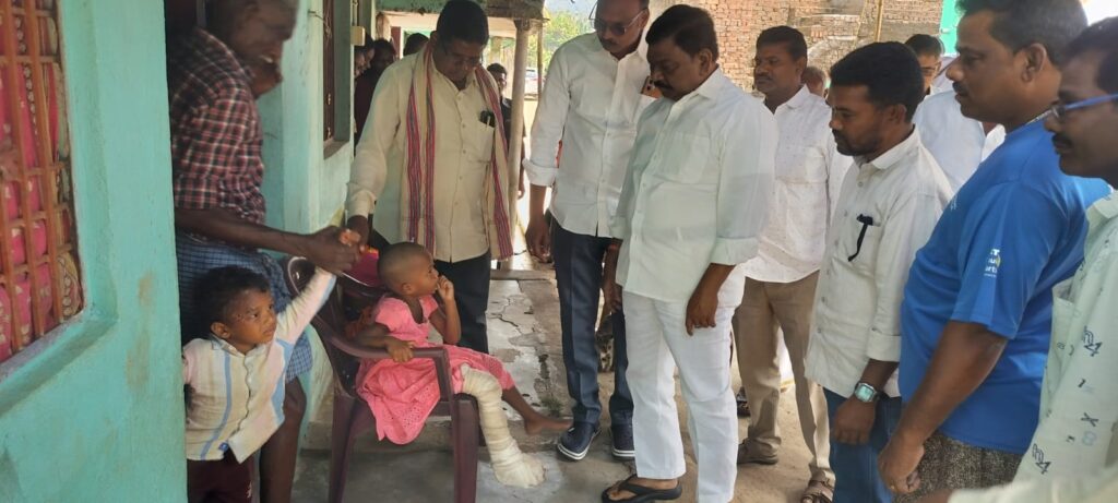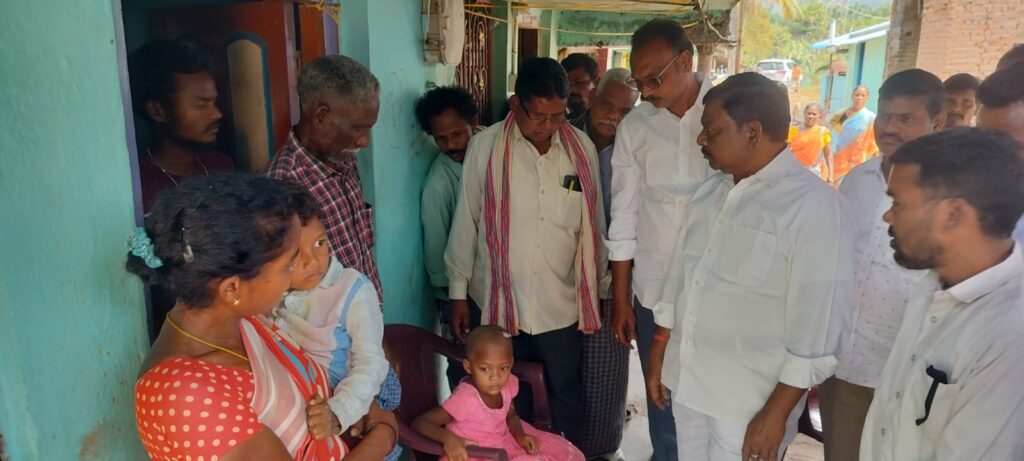 రోడ్డు ప్రమాదంలో క్షతగాత్రులైన గిరిజన చిన్నారులు చెడ్డా.దీనా, డానియల్ లను పరామర్శించిన రాజన్నదొర గారు మరియు సాలూరు మండల వైసీపీ నేతలు. తల్లిదండ్రులు కోల్పోయిన ఇద్దరు చిన్నారులను చూసి చలించిపోయి కన్నీటి పర్యంతమైన మాజీ డిప్యూటీ సీఎం రాజన్న దొర గారు.* గత నెలలో అంపావల్లిలో జరిగిన రోడ్డు ప్రమాదం *సాలూరు మండలం కురుకుట్టి పంచాయితీ,చిన బారిగాం గ్రామ గిరిజన దంపతులు చెడ్డా.అప్పారావు(26సం.లు), వనిత(24 సం.లు) మరణించారు.వీరి పిల్లలు దీనా (5సం.లు),డానియల్(4సం.లు)క్షతగాత్రులయ్యారు.వారి పాప దీనాకు విశాఖ కేజీహెచ్ లో కుడి కాలుకు సర్జరీ జరిగింది.* వైద్యుల సలహాల మేరకు ఇంటి వద్ద చికిత్స పొందుతూ విశ్రాంతి తీసుకుంటున్నారు.ఈ విషయం తెలుసుకున్న *ఆంధ్రప్రదేశ్ రాష్ట్ర మాజీ డిప్యూటీ సీఎం,మాజీ గిరిజన సంక్షేమ శాఖ మంత్రి వర్యులు& రాష్ట్ర వైసీపీ పొలిటికల్ అడ్వైజర్ కమిటీ సభ్యులు శ్రీ పీడిక.రాజన్నదొర* గారు ఈరోజు సాలూరు మండలం, చినబారిగాం గ్రామం వెళ్లి భాధిత గిరిజన కుటుంబాన్ని పరామర్శించారు.రోడ్డు ప్రమాదంలో తల్లిదండ్రులను కోల్పోయిన ఇద్దరి *చిన్నారులు దీనా,డేనియల్ లను చూసి చలించిపోయి భావోద్వేగానికి గురయ్యారు*.ఈ సందర్బంగా *మాజీ డిప్యూటీ సీఎం రాజన్నదొర* గారు భాధిత కుటుంబ సభ్యులతో మాట్లాడుతూ క్షతగాత్రులైన పిల్లలు ఆరోగ్య పరిస్థితులు అడిగి తెలుసుకున్నారు. చిన్నారి దీనాకు సర్జరీ అయిన కాలును పట్టుకొని చూసారు.మీకు ఏ అవసరం వచ్చిన నన్ను సంప్రదించండి నేను మీకు అండగా ఉంటాను ధైర్యంగా ఉండండి అని ఓదార్చుతూ వారికి భరోసా కల్పించారు.ఈ కార్యక్రమంలో రాష్ట్ర వైసీపీ క్రిస్టియన్ మైనారిటీ సెల్ జాయింట్ సెక్రటరీ బచ్చల.ప్రసాద్ రావు గారు, మన్యం జిల్లా వైసీపీ ప్రధాన కార్యదర్శి దండి.శ్రీనివాసరావు గారు,కురుకుట్టి ఎంపీటీసీ గెమ్మెల.సుబ్బు గారు,సర్పంచ్ వంతల.అప్పారావు గారు,వైస్ ప్రెసిడెంట్ సాంబ గారు,దండిగామ్ సర్పంచ్ ప్రతినిధి రాజారావు గారు, సారిక ఎంపీటీసీ ప్రతినిధి రాంబాబు గారు,వైసీపీ కార్యకర్తలు మరియు తదితరులు పాల్గొన్నారు. Spread the love టపా నావిగేషన్ సాలూరు మున్సిపాలిటీ 28వ వార్డులోపెన్షన్లను పంపిణీ చేసిన మంత్రి సంధ్యారాణి