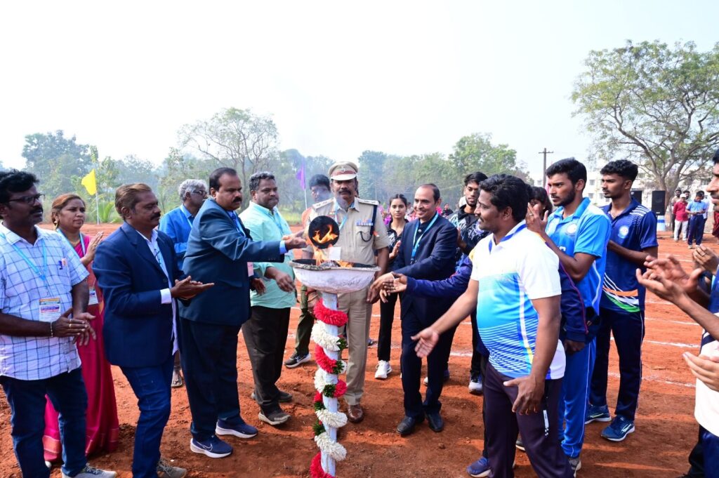 ప్రారంభోత్సవంలో భాగంగా జాతీయ జెండా ఆవిష్కరణ, క్రీడా జ్యోతి ప్రజ్వలన కార్యక్రమాలు నిర్వహించారు. అనంతరం అన్ని అనుబంధ కళాశాలల విద్యార్థులతో సైనిక బ్యాండ్తో గ్రాండ్ మార్చ్ ఫాస్ట్ నిర్వహించి అథ్లెటిక్ ప్రమాణ స్వీకారం చేయించారు. వివిధ కళాశాలల విద్యార్థులు రంగురంగుల వస్త్రధారణలో తెలుగు సంస్కృతిని ప్రతిబింబించే జానపద నృత్యాలతో ప్రేక్షకులను అలరించారు.