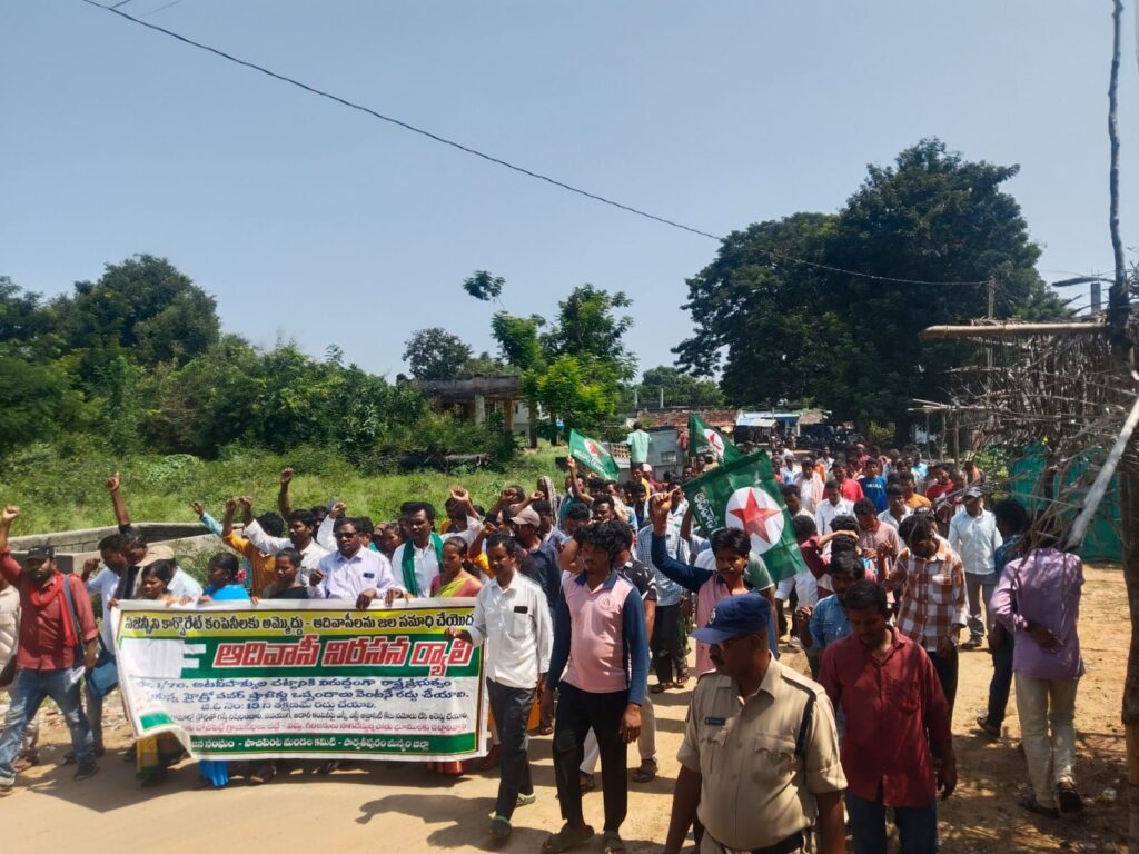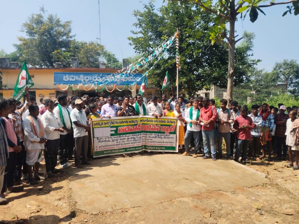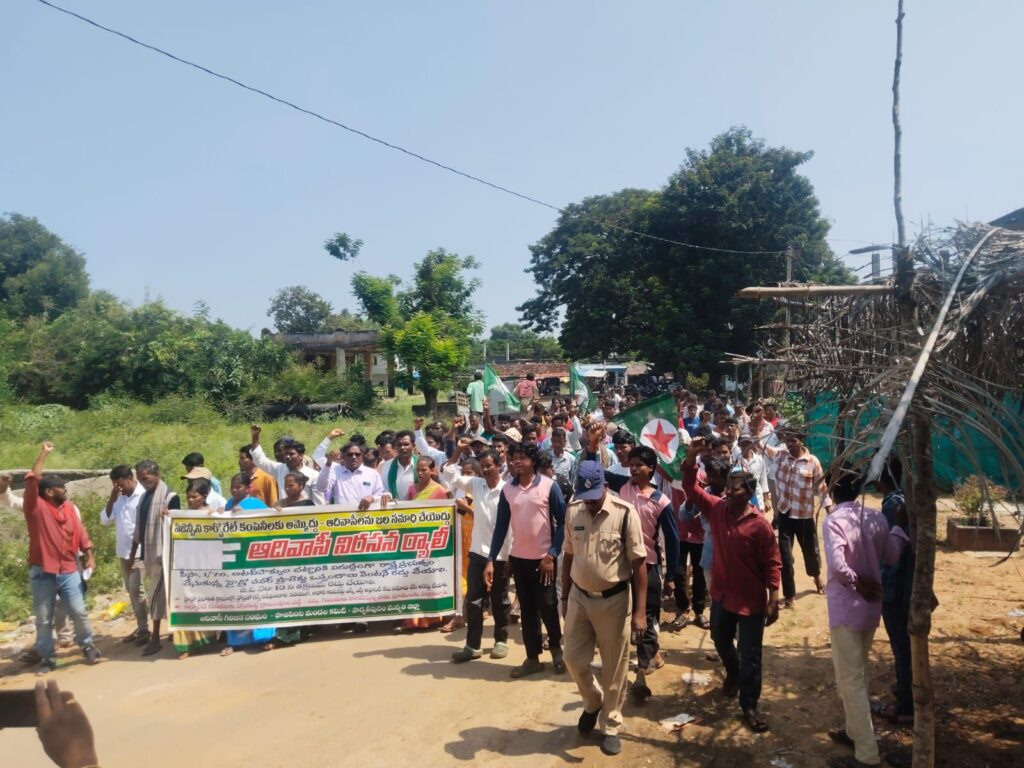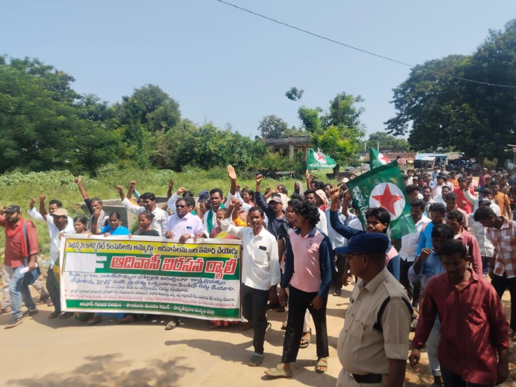 హైడ్రోపవర్ ప్రాజెక్టు అనుమతులను వెంటనే రద్దు చేయాలని ోరుతూ పాచిపెంట మండల కేంద్రంలో ఆర్టీసీ కాంప్లెక్స్ గాంధీ బొమ్మ ఆవరణ నుండి ఎమ్మార్వో కార్యాలయం వద్దకు ర్యాలీగా వెళ్లి హైడ్రోపవర్ ప్రాజెక్టు వ్యతిరేక పోరాట కమిటీ ఆధ్వర్యంలో ఎమ్మార్వో కార్యాలయం వద్ద నిరసన కార్యక్రమం చేయడం జరిగింది. హైడ్రో పవర్ ప్రాజెక్టు వ్యతిరేక పోరాట కమిటీ నాయకులు డి పండు. శిల్పజన్ని రామయ్య.గరిసి గుడ్డి సర్పంచ్ ఆనంద్ తంగలం సర్పంచ్ పోయ్ అప్పన్న మూటకూడు సర్పంచ్ మల్లేష్ గొట్టూరు సర్పంచ్ సింహాచలం ఎంపీటీసీ చదల రాజు. ఆధ్వర్యంలో నిరసన కార్యక్రమం.జరిగింది.ఈ కార్యక్రమానికిముఖ్య అతిథిగా హాజరైన. ఆదివాసి గిరిజన సంఘం జిల్లా గౌరవ అధ్యక్షులు శ్రీధరపు అప్పారావు మాట్లాడుతూ. షెడ్యూలు ప్రాంతాల్లో ఉన్నటువంటి గిరిజన ప్రాంతాల్లో గిరిజనుల యొక్క అనుమతి లేకుండా. డ్రోన్లు పెట్టి సర్వేలు చేసి సర్వే రాలును పాతడం చట్టరీత్యా నేరం. ఇటువంటి నవయుగ అదాని పవర్ హైడ్రో పవర్ ప్రాజెక్టు కంపెనీలపై ఎస్సీ ఎస్టీ అట్రాసిటీసి కేసులను నమోదు చేయాలని అన్నారు. పోరాడి సాధించుకున్నటువంటి జీవోలను గిరిజన హక్కులను కాలరాస్తు ఆగమేఘాల మీద నవయుగ కంపెనీకి 13 నెంబర్ జీవో ఇచ్చి గిరిజనులను ఆదివాసీలందరినను జల సమాధి చేసి గిరిజన ప్రాంతంలో హైడ్రోపవర్ ప్రాజెక్టు పేరుతో ఖనిజ సంపాదన తరలించే కు ట్రలో భాగంగా ఇటువంటి నియంత పద్ధతులు కేంద్ర రాష్ట్ర ప్రభుత్వాలు పూనుకున్నాయని ఆవేదన వ్యక్తం చేశారు అటవీ హక్కుల చట్టాన్ని సక్రమంగా అమలు చేయాలని వీసా చట్టాన్ని పగడ్బందీగా అమలుచేసి గిరిజన హక్కులు చట్టాలను కాపాడాలని హైడ్రో పవర్ ప్రాజెక్ట్ వలన గిరిజలకు ఉపాధి కలుగుతుందని తప్పుడు ఆరోపణలు మానుకొని గిరిజన ప్రాంతాల్లో అడవి తల్లి బాట అని పేరుతో గిరిజనులను ఆడవుల నుండి వెళ్ళగొట్టే కుట్రలు ప్రభుత్వాలు మానుకోవాలని అన్నారు.హైడ్రోపవర్ ప్రాజెక్టు కమిటీ నాయకులు పండు మాట్లాడుతూ. గిరిజనులను జల సమాధి చేసే విధంగా ప్రభుత్వాలు పూనుకోవడం సరైనది కాదని దీన్ని తీవ్రంగా వ్యతిరేకిస్తామని ప్రభుత్వాలు గిరిజనుల పక్షాన నిలబడి అటువకుల చట్టాన్ని పగడ్బందీగా అమలు చేసి గిరిజనులకు అభివృద్ధి బాటలో నడిపించాలని డిమాండ్ చేశారు.హైడ్రో పవర్ ప్రాజెక్ట్ వ్యతిరేక పోరాట కమిటీ సభ్యురాలు సన్నమ్మ మాట్లాడుతూ అడవిలో ఉన్నటువంటి ప్రకృతి సంపదతో నేటి వరకు బ్రతికామని దుంపలు ఆకులు ఎదురు కంజులు తిని బతికాము ఈ ప్రాంతం నుంచి వెళ్ళగొట్టడం చూస్తే ప్రాణాలైనా వదులుకుంటాం తప్ప భూములు వదులుకోమని అన్నారు .హైడ్రోపవర్ ప్రాజెక్టు వ్యతిరేక పోరాట కమిటీ కమిటీ.కన్వీనర్ కోరాడ ఈశ్వరరావు మాట్లాడుతూ కేంద్ర రాష్ట్ర ప్రభుత్వాలు కార్పోరేట్లో పెట్ట