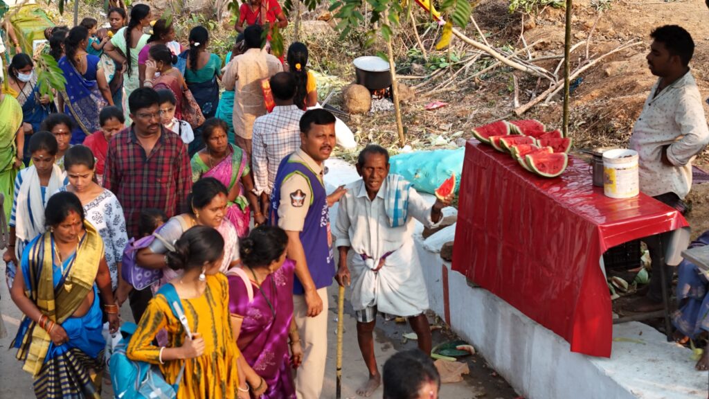 ఈ సందర్భంగా జిల్లా ఎస్పీ ఎ.ఆర్.దామోదర్ మాట్లాడుతూ – మహాశివరాత్రి జాతర మహోత్సవాలులో భక్తులు సులభతరంగా శివుడిని దర్శించుకొనే విధంగా క్యూలైన్లను ఏర్పాటు చేయడం, త్వరితగతిన భక్తులను వరుస క్రమంలో పంపేటట్లు బందోబస్తు నిర్వహించడం, భక్తుల రద్దీని, వాహనాల రాకపోకలను సిసి కెమెరాలు, డ్రోన్ లతో నిరంతరం పర్యవేక్షిస్తూ, సందర్భానుసారంగా రద్దీని నియంత్రిస్తున్నామని జిల్లా ఎస్పీ తెలిపారు. సామాన్య భక్తులకు ఎటువంటి ఇబ్బందులు తలెత్తకుండా జిల్లా మొత్తం సుమారు 1000మంది పోలీసులతో భద్రత ఏర్పాట్లు చేపట్టడం సత్ఫలితాలిస్తున్నాయన్నారు. వాహనాల పార్కింగుకు ప్రత్యేకంగా స్థలాలు కేటాయించడంతో ఆలయ పరిసర ప్రాంతాల్లో ట్రాఫిక్ రద్దీని నియంత్రించగలుగుతున్నామన్నారు. పండగ రోజుల్లో నిర్వహించే సాంస్కతిక కార్యక్రమాలు, ఎగ్జిబిషను, ఆలయ పరిసరాల వద్ద ఎటువంటి జేబు దొంగతనాలు, చైన్ స్నాచింగ్స్ జరగకుండా మఫ్టీలో పోలీసులు నియమించడం, ప్రత్యేకంగా ఏర్పాటు చేసిన సిసి కెమెరాలను, డ్రోన్స్ ను నిరంతరం పర్యవేక్షిస్తూ ప్రజలు మరియు భక్తుల మన్ననలు పొందుతున్నారని తెలిపారు. మహాశివుడిని దర్శించేందుకు విచ్చేసిన వృద్ధులు, గర్భిణిలు, దివ్యాంగులకు ఎటువంటి ఇబ్బంది కలగకుండా అవసరమైన సహాయ, సహకారాలను విజయనగరం జిల్లా పోలీసులు సేవాదళ్ పేరుతొ సేవలందిస్తున్నారని జిల్లా ఎస్పీ ఎ.ఆర్.దామోదర్ తెలిపారు.