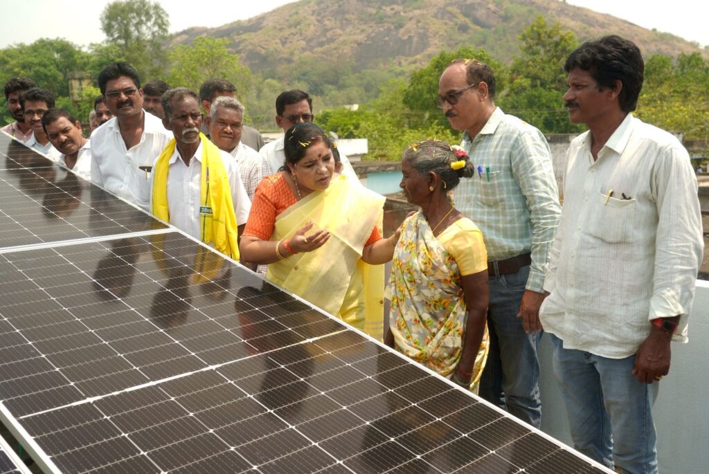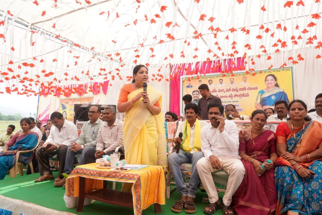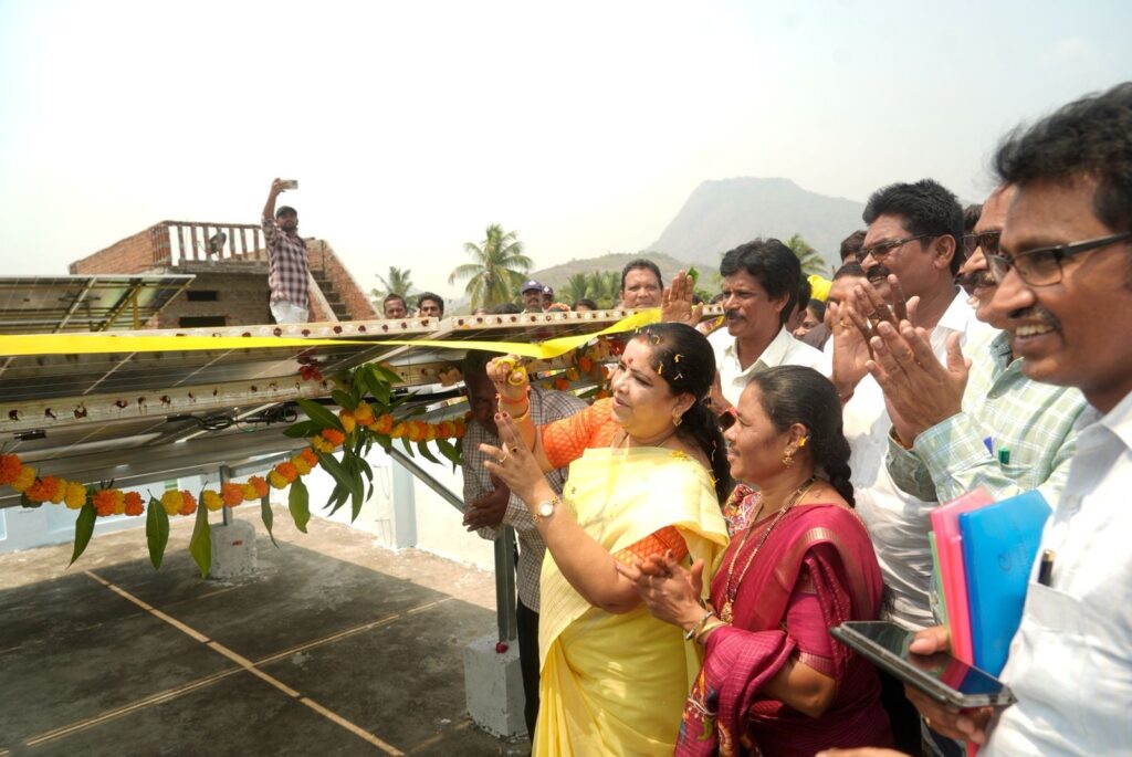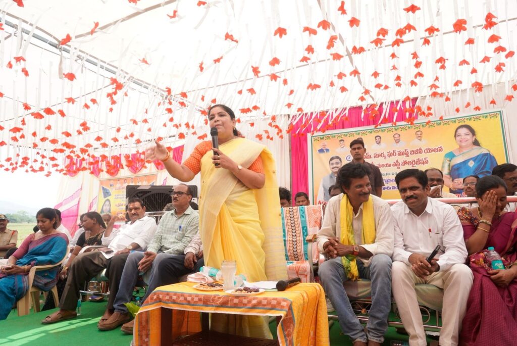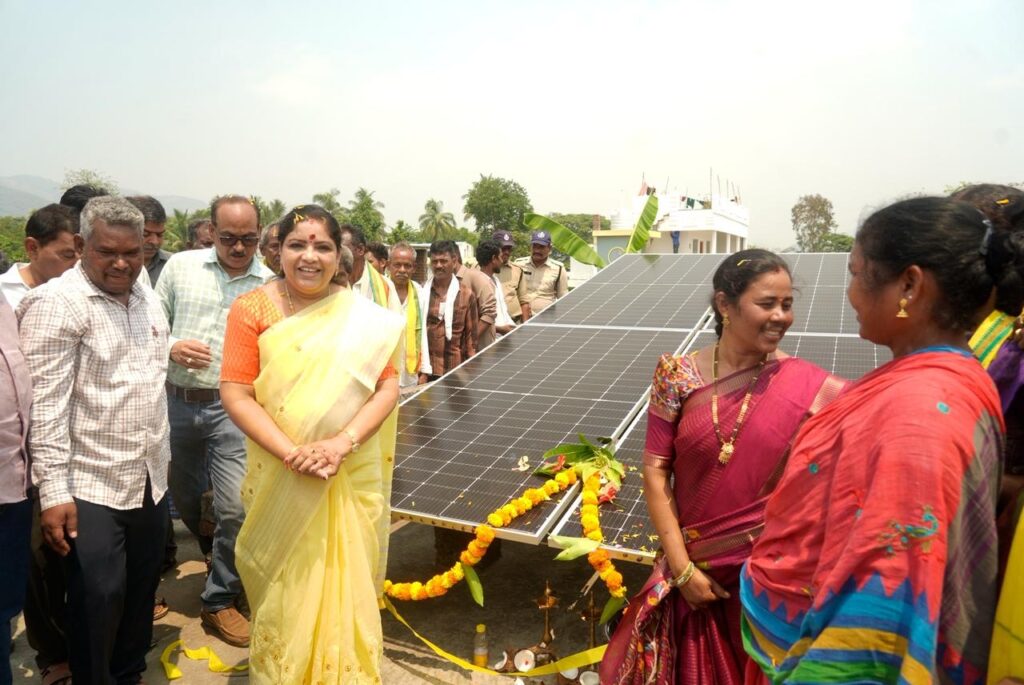 మన్యం జిల్లా సాలూరు మండలం కొత్తవలస గ్రామంలో ‘సూర్యాఘర్’ కార్యక్రమాన్ని మంత్రి గుమ్మిడి సంధ్యారాణి ప్రారంభించారు. సూర్యాఘర్’ పథకం లభించినందుకు ఎస్టీ ప్రజలు ఎంతో ఆనందంతో మంత్రి గుమ్మిడి సంధ్యారాణి గారి కి ఘన స్వాగతం పలికి, మేళతాళాలతో కార్యక్రమంలో పాల్గొన్నారు.ఈ సందర్భంగా మాట్లాడుతూ, ఆంధ్రప్రదేశ్ రాష్ట్రం ఈ కార్యక్రమం అమలులో దేశంలోనే ముందంజలో ఉందని మంత్రి తెలిపారు.రాష్ట్ర ప్రభుత్వం సుమారు 6 లక్షల ఎస్సీ / ఎస్టీ కుటుంబాలకు 2 కిలోవాట్ సామర్థ్యం గల సోలార్ సిస్టమ్లను ఉచితంగా ముఖ్యమంత్రి నారా చంద్రబాబు నాయుడు గారు అందించేందుకు చర్యలు తీసుకుంటున్నారు అని మంత్రి తేలిపారు ఈ పథకం ద్వారా పేద కుటుంబాలపై ఉన్న విద్యుత్ ఖర్చు భారాన్ని తగ్గించడం ప్రధాన లక్ష్యం అని మంత్రి పేర్కొన్నారు.అదేవిధంగా, ఈ సోలార్ సిస్టమ్ల నిర్వహణ కోసం ప్రతి నెల మెంటెనెన్స్ చార్జ్ను కూడా ప్రభుత్వం అందిస్తుంది అని మంత్రి వెల్లడించారు. కొత్తవలస గ్రామంలో 36 ఇళ్లకు ‘సూర్యాఘర్’ పథకం అందిస్తున్నాము అని మంత్రి తెలిపారు.అలాగే సాలూరు నియోజకవర్గం పరిధిలో మొత్తం 4300 ఇళ్లకు ‘సూర్యాఘర్’ పథకాన్ని అందించనున్నాము అని మంత్రి స్పష్టం చేశారు.మన్యం జిల్లా లో సుమారు 14100 సోలార్ యూనిట్లు ఏర్పాటు చేసి ప్రభుత్వం అందిస్తుందని తెలిపారు.అలాగే ప్రతి నియోజకవర్గంలో సుమారుగా పదివేలకు పైగా సోలార్ యూనిట్లను ఏర్పాటు చేయడమే ప్రభుత్వ లక్ష్యమని తెలిపారు Spread the love టపా నావిగేషన్ మానవత్వానికి నిలువెత్తు రూపం.. మన కలెక్టర్*