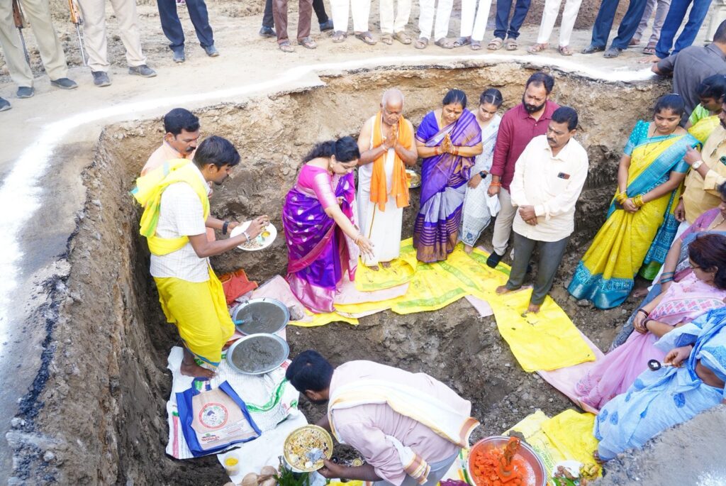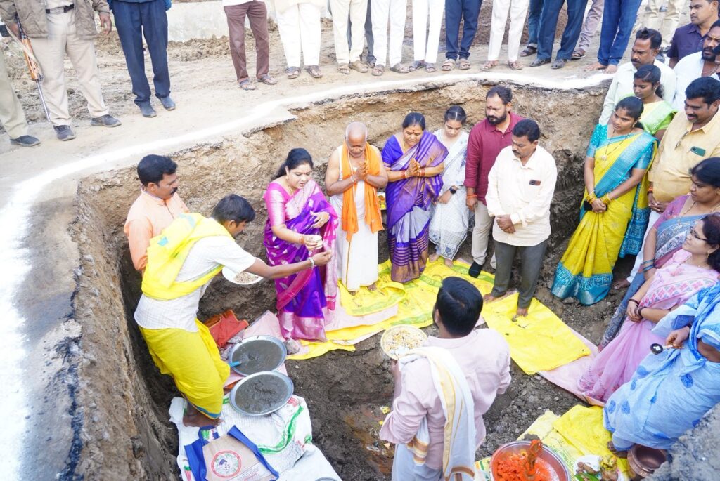 అంజనేయ స్వామి విగ్రహ శంకుస్థాపన చేసిన మంత్రి సంధ్యా