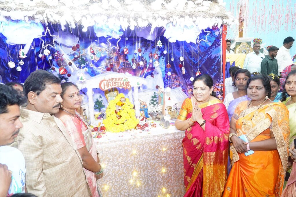 సాలూరు చర్చిల్లో క్రిస్మస్ వేడుకల్లో పాల్గొని మంత్రి సంధ్యారాణి అందరితో కలిసి ప్రత్యేక ప్రార్థనలు చేశారు ఈ పవిత్రమైన క్రిస్మస్ దినాన మనందరిని ఒకచోట చేర్చిన దేవునికి ముందుగా కృతజ్ఞతలు తెలుపుదాం. క్రిస్మస్ అనేది కేవలం పండుగ మాత్రమే కాదు, ఇది ప్రేమ, శాంతి మరియు ఆశను మనకు గుర్తుచేసే రోజు.యేసు క్రీస్తు ఈ లోకానికి రాజుగా కాకుండా, ఒక సాధారణ శిశువుగా జన్మించారు. ఆయన జననం ద్వారా దేవుడు మనకు ఒక గొప్ప సందేశం ఇచ్చారు.. అని మంత్రి సంధ్యారాణి వివరించారు…“ప్రేమతో జీవించండి, క్షమతో ముందుకు సాగండి” అని. యేసు బోధించిన దయ, వినయం, సేవా భావం మన జీవితాల్లో కనిపించాలి.ఈ రోజుల్లో మన చుట్టూ ఎన్నో కష్టాలు, విభేదాలు ఉన్నాయి. అలాంటి సమయంలో యేసు చూపించిన మార్గాన్ని అనుసరించి, ఒకరికొకరు సహాయం చేయాలి, ద్వేషాన్ని విడిచిపెట్టి శాంతిని పంచాలి. అవసరంలో ఉన్నవారిని ఆదుకోవడం, బాధలో ఉన్నవారిని ఓదార్చడం నిజమైన క్రిస్మస్ సందేశం.ఈ క్రిస్మస్ పండుగ మన హృదయాల్లో కొత్త వెలుగును నింపాలి. మన కుటుంబాల్లో ప్రేమ పెరగాలి, మన సంఘంలో ఐక్యత బలపడాలి. దేవుని ఆశీర్వాదాలు మన అందరిపై ఉండాలని ప్రార్థిస్తూ, మీ అందరికీ శుభ క్రిస్మస్ శుభాకాంక్షలు అని మంత్రి సంధ్యారాణి పేర్కొన్నారు Spread the love టపా నావిగేషన్ పొందూరు విద్యావతి మరణానికి కారకులైన వారిని శిక్షించాలని వారి కుమార్తె పొందూరు జోత్స్న జిల్లా ఎస్పీకి ఫిర్యాదు …… మక్కువ గ్రామంలో 53 లక్షల వ్యయంతో నిర్మించనున్న MEO కార్యాలయం శంకుస్థాపన
