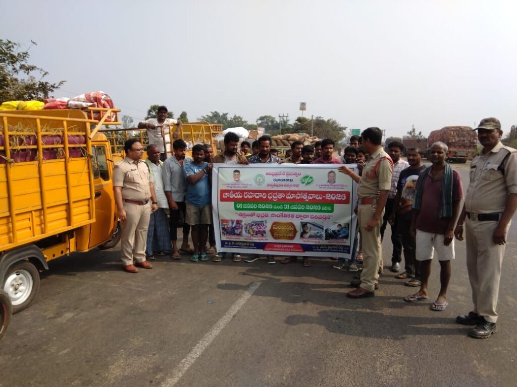 పార్వతీపురం మన్యం జిల్లా సాలూరు పట్టణ బైపాస్ రోడ్డులో వాహనదారులకు జాతీయ రోడ్డు భద్రతా మాసోత్సవాల్లో భాగంగా రోడ్డు భద్రతకు సంబంధించిన సూచనలు, జాగ్రత్తలు తెలియజేస్తూ వారితో ప్రతిజ్ఞ చేయించడం జరిగిందని