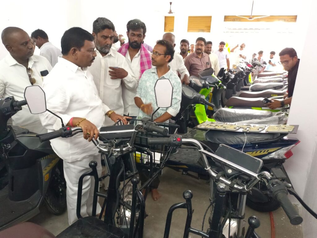 సాలూరు పట్టణంలో *ఎలస్కో ఎలక్ట్రికల్ స్కూటీల నూతన షోరూమ్* ప్రారంభోత్సవ కార్యక్రమం ఘనంగా జరిగింది.ఈ కార్యక్రమానికి ముఖ్యఅతిథిగా హాజరైన *మాజీ డిప్యూటీ సీఎం&మాజీ గిరిజన సంక్షేమ శాఖ మంత్రి వర్యులు శ్రీ పీడిక.రాజన్నదొర* రిబ్బన్ కత్తిరించి షోరూమ్ను ప్రారంభించారు.ఈ సందర్భంగా ఆయన మాట్లాడుతూ,భవిష్యత్తులో ఎలక్ట్రిక్ వాహనాల వినియోగం పెరగడం ద్వారా ఇంధన వ్యయం తగ్గడంతో పాటు పర్యావరణ పరిరక్షణకు ఎంతో ఉపయోగపడుతుందని పేర్కొన్నారు.ప్రజలు ఎలక్ట్రిక్ వాహనాల వైపు మొగ్గు చూపాలని తెలిపారు.ఈ కార్యక్రమంలో స్థానిక నాయకులు,వ్యాపారవేత్తలు, యువత,అభిమానులు మరియు పాల్గొన్నారు. Spread the love టపా నావిగేషన్ విద్యార్థుల ఆరోగ్యంపై ప్రత్యేక నిఘా జిల్లా పరిషత్ వైస్ చైర్మన్ కొర్రజన్ని సింహాచలం ను పరామర్శిచిన మాజీ డిప్యూటీ సీఎం పీడిక రాజన్న దొర