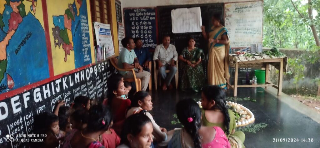 గరివిడి : మండలం లో ఐతం వలస గ్రామం , బొండపల్లి సెక్టార్ పరిధిలో ఉన్న అంగన్వాడీ సెంటర్ లో పోషకాహార మాసోత్సవం నిర్వహించడం జరిగింది. ఈ కార్యక్రమంలో పౌష్టికాహార ప్రదర్శన చేసి తల్లులు, గర్భిణీలు, బాలింతలకు పౌష్టికాహారం పై అవగాహన కల్పించడం జరిగింది. ఈ కార్యక్రమానికి ముఖ్య అతిథిగా సూపర్వైజర్ ఎం జ్యోతి పాల్గొన్నారు. ఈ సందర్భంగా ఆమె మాట్లాడుతూ పౌష్టికాహారం తీసుకోవడం వలన రక్తహీనత బారిన పడకుండా ఉండవచ్చని, గర్భిణీలు ప్రసవ సమయంలో ఆరోగ్యకరంగా ఉంటారని, తల్లి బిడ్డ కూడా క్షేమంగా ఉంటారని అన్నారు. రక్తహీనత లేకుండా ఉంటే అనేక రకాల వ్యాధులు సోకకుండా ఉంటాయని తెలిపారు. పిల్లలకు ఎటువంటి ఆహారము ఇవ్వాలో, బాలామృతంతో ఎటువంటి వంటలు చేసి పిల్లలకు పెట్టవచ్చొ తయారుచేసి చూపించారు. ఈ కార్యక్రమంలో సెక్టార్ సూపర్వైజర్ ఎమ్. జ్యోతి, అంగన్వాడీ కార్యకర్త పైడమ్మ , గర్భిణీ, బాలింత లు తల్లుల పాల్గొన్నారు .