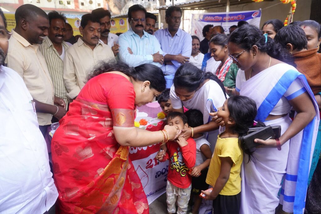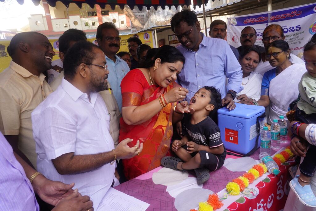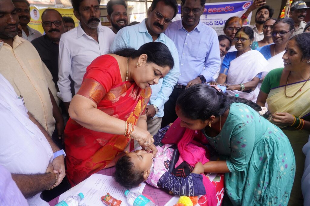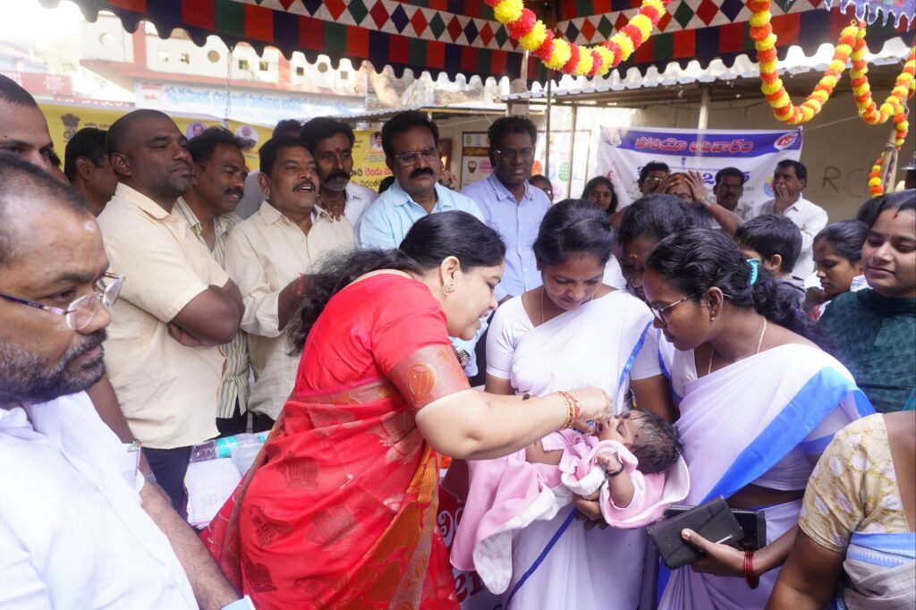 చిన్నారులకు తనే స్వయంగా పోలియో చుక్కలు వేసారు.ప్రతి చిన్నారి ఆరోగ్యమే ప్రభుత్వ ప్రథమ ప్రాధాన్యత అని స్పష్టం చేశారు.0–5 సంవత్సరాల లోపు పిల్లలందరికీ పోలియో చుక్కలు అందించాలన్ని సంబంధిత అధికారులను ఆదేశించారు. జిల్లావ్యాప్తంగా 905 పోలియో చుక్కల బూత్లు ఏర్పాటు చేశామని 42 మొబైల్ టీమ్స్, 19 ట్రాన్సిట్ పాయింట్ల ద్వారా పిల్లల ను గుర్తించి ఇంటి ఇంటికి వెళ్లి పోలియో చుక్కలు వేస్తారని ప్రతి చిన్నారి కి పోలియో చుక్కల అందేలా సమన్వయంతో పని చేయాలని అధికారులకు ఆదేశించారు.