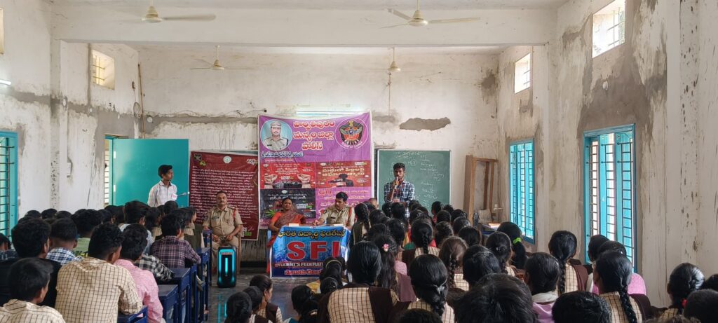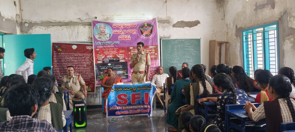సాలూరు మండల కార్యదర్శి సూర్య అధ్యక్షతన సాలూరు టౌన్ సీఐ గారు అప్పలనాయుడు గారు మాట్లాడుతూ.డ్రగ్స్ అనేవి ఒక చీడ పురుగు లాంటిది మన యొక్క జీవితాన్ని నాశనం చేస్తుంది అటువంటి డ్రగ్స్ ను మనమందరము కూడా వ్యతిరేకిద్దాం. రాష్ట్రవ్యాప్తంగా మహిళలపై ఇప్పటివరకు ఈ ఏడాది కాలంలో 118 మంది బాలికలపై అత్యాచారాలు జరిగాయి అంటే సగటు గా నెలకు 15 మంది బాలికలు అత్యాచారానికి గురవుతున్నారు. ఎంత కిరాతకంగా ఈ సమాజంలో ఉందో మనం అర్థం చేసుకోవాల్సింది. ఈ అత్యాచారాలను ఆపాలి అంటే డ్రగ్స్ ని, మద్యం ని, అరికట్టాలి అని అన్నారు.బెట్టింగ్ యాప్స్ వల్ల ఇప్పటివరకు ఎక్కువగా విద్యార్థులు ఆత్మహత్యలు చేసుకుంటున్నారు. దీనిని ఇంకెవరు ఆపలేరు కేవలం విద్యార్థులు మాత్రమే ఆపగల రని అన్నారు. చాలామంది విద్యార్థులు ట్రాఫిక్ నిబంధనలు తెలియక ఘోర రోడ్డు ప్రమాదాలలో చనిపోతున్నారు. మనం బండి మీద వెళ్లేటప్పుడు కొంచెం నెమ్మదిగా వెళ్లాలని తెలియజేశారు. 18 సంవత్సరాలు దాటి లైసెన్స్ ఉన్నవాళ్లు మాత్రమే వాహనాలు నడపాలని తెలియజేశారు.సాలూరు గవర్నమెంట్ జూనియర్ కళాశాల ప్రిన్సిపాల్ మేడం సత్యవతి గారు మాట్లాడుతూ.విద్యార్థి అన్న వాడు చదవాలి. అయితే బడిలో చెప్పేది మాత్రమే చదవటం కాదు సమాజం గురించి చదవాలి.సమాజం పట్ల అవగాహన ఉండాలి. సమాజం గురించి తెలుసుకోవలసిన అవసరం నేటి విద్యార్థులకు ఉంది. ఏమీ చదువుకోని వారు కూడా చాలా గొప్ప స్థానాల్లో ఉన్నారు. ఏం చదువుకున్నాం అని కాదు!ఎంత జ్ఞానం సంపాదించుకున్నాం అనేది చాలా విలువైనది అని అన్నారు.
