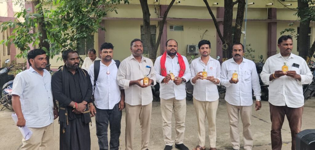 విజయనగరం జిల్లాలో మద్యం షాపుల యజమానులు ప్రభుత్వ నిబంధనలకి విరుద్ధంగా ఒక సిండికేట్ గా ఏర్పడి రోజువారి భవన కార్మికులు,రైతు కూలీలు సేవించే చీప్ లిక్కర్ పై ప్రత్యేక ముద్రతో అదనంగా ఒక్కొక్క సీసాపై పది రూపాయలు పెంచి ప్రతి పల్లె పల్లెకు బెల్ట్ షాపుల ద్వారా విక్రయించే అక్రమ దందాకు తెరలేపారని జనసేన పార్టీ దృష్టికి తెలియవచ్చినది.ఈ సందర్భంలో ఈ రోజున విజయనగరం జిల్లా కలెక్టర్ వారికి రాతపూర్వక రిపోర్టు విన్నపములను అందించడం జరిగింది.