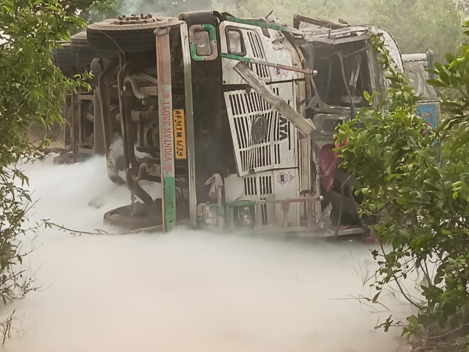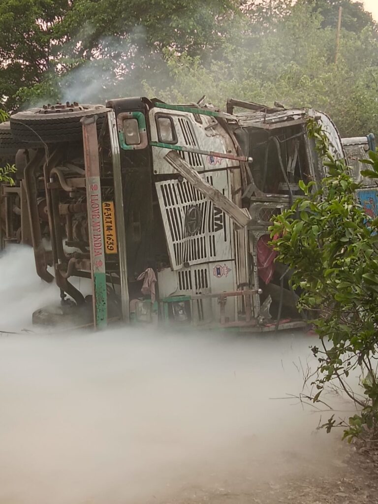 ఒడిస్సా రాష్ట్రం జగధల్పూర్ నుండి విశాఖకు ఆర్గాన్ లిక్విడ్ (LAR)తో వెళ్తున్న ట్యాంకర్ ఈ రోజు సాయంత్రం సుమారుగా 6 గంటల ప్రాంతంలో పాచిపెంట మండలం పి కొనవలస చెక్పోస్ట్ సమీపంలో ఉన్న దుర్గ దేవి ఆలయం మలుపు వద్ద అదుపుతప్పి బోల్తా పడింది. ఈ ఘటన లో డ్రైవర్ తీవ్రంగా గాయపడ్డాడు. డ్రైవర్ ని సాలూరు ఏరియా ఆసుపత్రిలో చికిత్స పొందుతూ మృతి చెందాడు. డ్రైవర్ బీహార్ రాష్ట్రం కు చెందిన ప్రమోద్ కుమార్ రాయ్ గా గుర్తించారు. ఈ ఘటనపై కేసు నమోదు చేసి దర్యాప్తు చేస్తున్నామని పాచిపెంట ఎస్సై లాలం అర్జున్ తెలిపారు Spread the love టపా నావిగేషన్ స్వర్ణ ఆంధ్ర – స్వచ్ఛ ఆంధ్ర కార్యక్రమం లో పాల్గొన్న మంత్రి సంధ్యారాణి