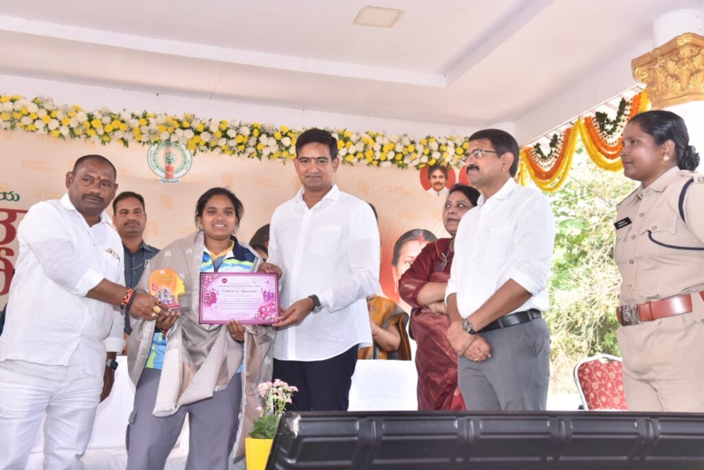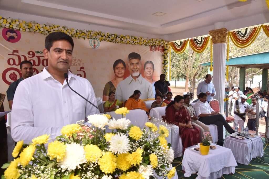 *మహిళల అభివృద్ధితోనే రాష్ట్రం, దేశం అభివృద్ధి* –మంత్రి కొండపల్లి శ్రీనివాస్ విజయనగరం, మార్చి 8: మహిళలు బలంగా ఉంటేనే కుటుంబం, జిల్లా, రాష్ట్రం మరియు దేశం బలంగా ఉంటాయని రాష్ట్ర ఎం.ఎస్.ఎం.ఈ., సెర్ప్, ఎన్.ఆర్.ఐ సాధికారత సంబంధాల శాఖ మంత్రి కొండపల్లి శ్రీనివాస్ పేర్కొన్నారు.అంతర్జాతీయ మహిళా దినోత్సవం సందర్భంగా ఆదివారం స్థానిక పోలీస్ పెరేడ్ గ్రౌండ్స్ లో నిర్వహించిన జిల్లా స్థాయి కార్యక్రమంలో ఆయన మాట్లాడారు. తాను గత రెండు సంవత్సరాలుగా ప్రజా జీవితంలో ఉన్నానని, మహిళలతో నిరంతరం మాట్లాడే అవకాశం లభించిందని అన్నారు. తన జీవితంలో తల్లి, అక్క, భార్య, చిన్న కుమార్తె ఉన్నారని, మహిళలు కుటుంబానికి ఎంతో ముఖ్యమని చెప్పారు. మహిళలు లేకుండా ఏ పండుగ కూడా పూర్తి కాదని, అలాంటి మహిళలను ఇచ్చిన భగవంతుడిని ఎప్పటికీ మరవలేమని అన్నారు.ప్రతి కుటుంబానికి ఒక ఇంటర్ప్రెన్యూర్ తయారు చేయాలనే లక్ష్యంతో ప్రభుత్వం పనిచేస్తోందని తెలిపారు. దేశంలో ఎక్కడా లేని విధంగా మహిళా స్వయం సహాయక సంఘాల అభివృద్ధికి ప్రభుత్వం ప్రత్యేక ప్రాధాన్యత ఇస్తోందన్నారు. అప్పట్లో పదిమంది మహిళలు కలిసి పొదుపు చేసే చిన్న సంఘాలుగా ప్రారంభమైన ఈ కార్యక్రమం నేడు భారీ ఉద్యమంగా మారిందన్నారు. ప్రస్తుతం రాష్ట్రంలో దాదాపు 90 లక్షల మహిళలు స్వయం సహాయక సంఘాలలో సభ్యులుగా ఉన్నారని చెప్పారు.గ్రామీణ పేదరిక నిర్మూలన కోసం ప్రభుత్వం అనేక సంస్కరణలు తీసుకొస్తోందని తెలిపారు. మహిళల విద్యాభివృద్ధికి ప్రభుత్వం తీసుకున్న చర్యల్లో స్త్రీ శక్తి పథకం ముఖ్యమైనదని పేర్కొన్నారు. గతంలో ఆర్థిక ఇబ్బందుల కారణంగా అనేక మంది విద్యార్థినులు ఇంటర్మీడియట్ తర్వాత చదువును ఆపివేసేవారని, అయితే ఇప్పుడు ఉచిత బస్సు ప్రయాణ సౌకర్యంతో వారు తమ చదువును కొనసాగిస్తున్నారని గుర్తు చేసారు.మహిళల భద్రత కోసం పోలీసు శాఖ రూపొందించిన శక్తి యాప్ మహిళల్లో ధైర్యాన్ని పెంచుతుందన్నారు. అదేవిధంగా మహిళల సంక్షేమం కోసం ప్రభుత్వం అమలు చేస్తున్న దీపం పథకం ద్వారా ప్రతి ఇంటికి గ్యాస్ కనెక్షన్ అందించారని గుర్తుచేశారు. ప్రస్తుతం దీపం-2 పథకం ద్వారా సంవత్సరానికి మూడు గ్యాస్ సిలిండర్లను ఉచితంగా అందిస్తూ మహిళలకు ఉపశమనం కలిగిస్తున్నారని చెప్పారు.మహిళల సంక్షేమం కోసం ప్రభుత్వం సింగిల్ ఉమెన్ పెన్షన్ వంటి పథకాల ద్వారా కూడా తోడ్పడుతోందన్నారు. మహిళల అభివృద్ధి మరియు రక్షణ కోసం రాష్ట్ర ముఖ్యమంత్రి చిత్తశుద్ధితో అనేక కార్యక్రమాలు అమలు చేస్తున్నారని, సంక్షేమ కార్యక్రమాల వల్ల రాష్ట్రం ప్రగతి బాటలో పయనిస్తోందని పేర్కొన్నారు.ముఖ్యమంత్రి ఆలోచనలు మరియు మాటలను స్ఫూర్తిగా తీసుకుని మహిళలు మరింతగా ముందుకు సాగాలని ఈ సందర్బంగా మంత్రి పిలుపునిచ్
