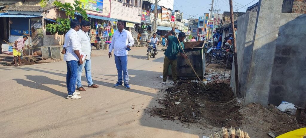 గౌ ” కమిషనర్ D.T.V కృష్ణారావు గారు ఆదేశాల మేరకు శానిటరీ ఇన్స్పెక్టర్ L .బాలకృష్ణ గారి పర్యవేక్షణలో పట్టణ పరిధిలో గల 24వ వార్డుకు సంబంధించి డబ్బి వీధి నుండి దండిగాం రోడ్డుకు ఉన్న కాలువలో మట్టి పేరుకుపోవడం స్థానిక ప్రజలు ఇబ్బంది పడటం వలన J.C.B సహాయంతో ఆ కాలువ పై ఉన్న పలకలను తొలగించి పూడికతీత పనులు (కాలువలో ఉన్న మట్టిని ) వెంటనే వాటిని ట్రాక్టర్ ద్వారా తరలించడమైనది. మరియు బోసుమ జంక్షన్ నుండి  శివాజీ బొమ్మ జంక్షన్ వరకు శతపతి వీధి ఏరియాలో రోడ్డు ఇరుపక్కల పేరుకుపోయిన మట్టి దెబ్బలను తవ్వించి వాటిని తరలించడమైనది. మరియు శతపతి వీధి  ఏరియా లో ఉన్న ఉల్లిపాయలు షాపులు, కిరాణి షాపులు నుండి వచ్చిన చెత్తలు ఆరుబయట పారబోయకుండా మున్సిపల్ వాహనమునకు అందించాలని అక్కడ ఉన్న వ్యాపారస్తులకు శానిట ఇన్స్పెక్టర్ గారు మరియు సిబ్బంది  హెచ్చరించడం జరిగింది.